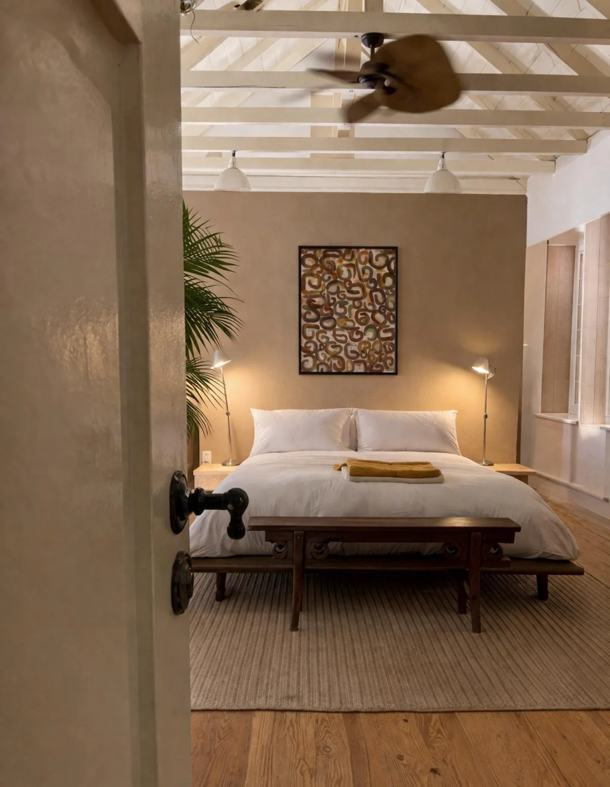 A garden level with direct courtyard access, this room is airy, grounded, and peaceful…